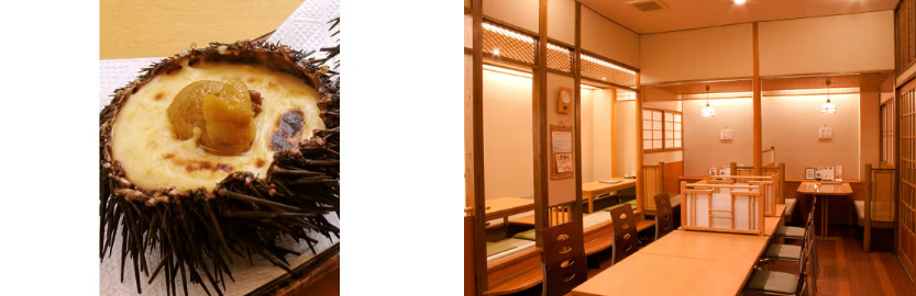 이 레스토랑은 신선한 성게와 해산물 요리로 유명합니다. 홋카이도를 중심으로 한 고품질 다시마 산지에서 조달하는 성게는 명반을 일절 사용하지 않는 무첨가 상태로 제공되고 있습니다. 성게의 풍부한 맛과 단맛을 즐길 수 있습니다. 성게 덮밥, 성게 사시미, 성게 그라탕 등의 성게 요리 외에도 살아있는 오징어 사시미와 제철 활어 사시미 등의 해산물 요리도 즐길 수 있습니다. 성게 전문점 특유의 요리와 홋카이도의 식재료를 사용한 요리 입니다.