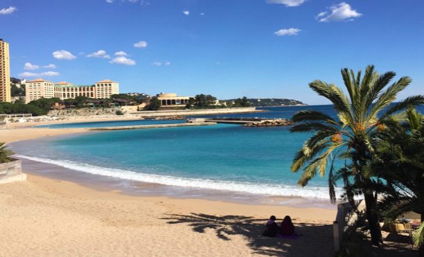 Monaco's coastline is mostly an inner wall or a port, and this is the only sandy beach.