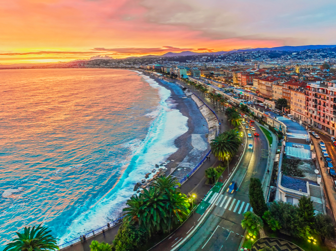 The most popular vacation destination in France is definitely the southern French coastline called "Court d'Ajour."One of them, "Nice," attracts many tourists every year because of its beautiful curves along the coastline called Promenade de Zangre.