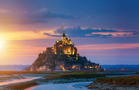 The monastery, built on a small island, looks like it's floating in the sea at high tide, and when you actually stand in front of you, you're overwhelmed by its power, and you're moved by its beautiful appearance, like a work of art. Mont Saint-Michel, which can be seen far from the meadow across the river, is also picturesque.