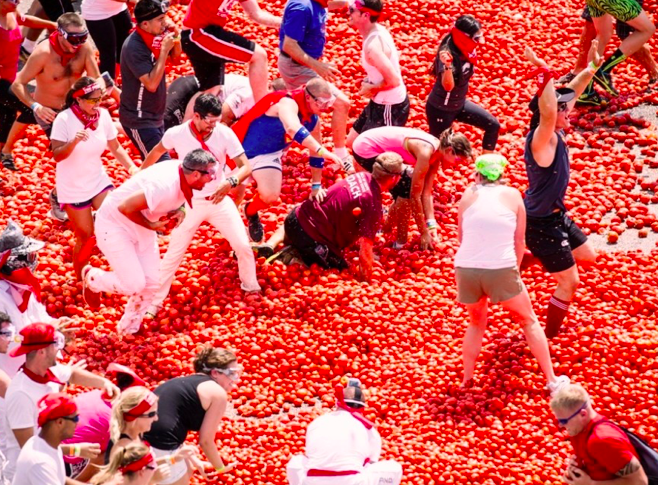 The festival, which has many tourists from various countries and regions, can change the exciting and exciting time of the hot weather. Many people who participate in the La Tomatina Festival gather at Pueblo Square in the center of a small town and enjoy the festival by throwing a large amount of 100,000 kilograms of tomatoes prepared for about an hour at home.