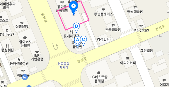 주소 : 강원도 동해시 천곡동 855(천곡 중앙사거리 LG베스트샵 동해점 맞은편)