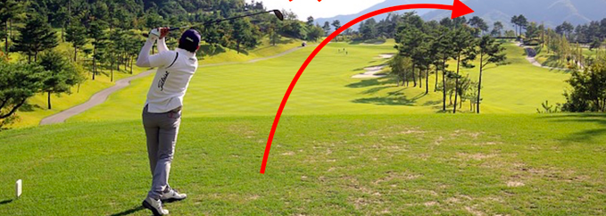 위의 ①②내용으로 되면…드라이버의 궤도가, 아웃사이드 인이 되어, 사이드 스핀이 걸려 오른쪽으로 돌아 버립니다.