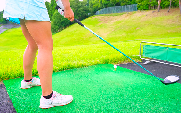 "슬라이스"의 원인은 인사이드 아웃의 궤도가 강해지는 것으로 클럽이 열리면서, 임팩트로 손이 몸에서 떨어져 버리는 점에 있습니다. 클럽은 약간 서 있는 이미지로 내리고 손이 몸에서 떨어지지 않는 스윙이 요구됩니다.