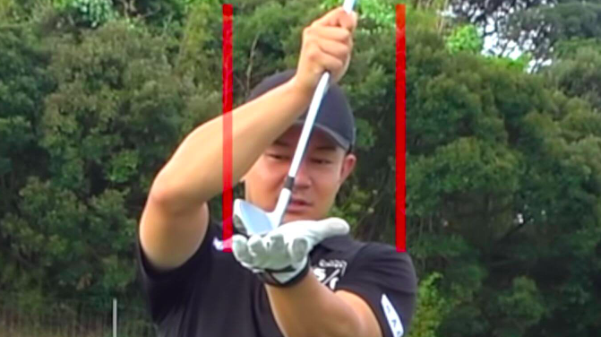 헤드보다 손이 목표 방향에 있어, 핸드 퍼스트의 상태를 만들 수 있습니다.