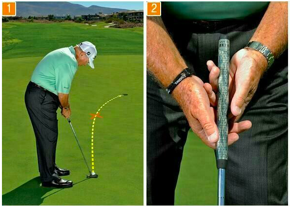퍼터의 토우 쪽에 가깝게 플레이 하는 것이지만 자칫 임팩트 때에 헤드가 뒤틀리고 볼을 엉뚱한 곳으로 보내게 될 수 있습니다. 또 다른 방법은 그립을 내려 잡는 것이지만 이는 퍼팅 감각을 흐리게 할 수 있으니 스트로크를 부드럽게 하려면, 그저 천천히 플레이 해보세요.