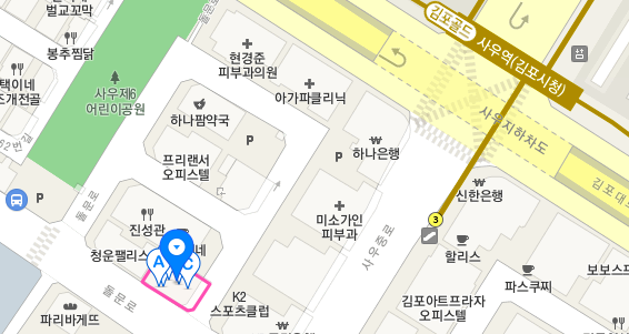 주소 : 경기도 김포시 돌문로 48(사우역 3번출구 근처 운동장 앞 사거리, 사우동 주민자치센터 방향으로 70m)