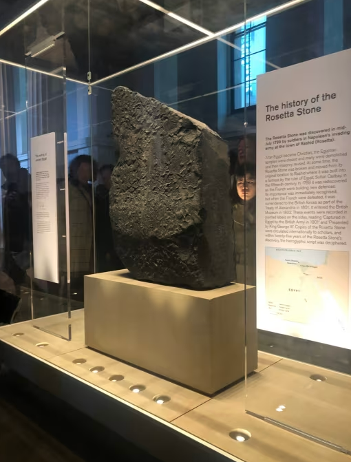 지금까지는 모두가 알고 있지만, 실제로 그것을 발견한 사람이 나폴레옹이었다는 것을 알고 계셨는지요? 엄밀히 말하면 나폴레옹이 이집트를 침공했을 때 이끌었던 군대의 한 병사에 의해 발견되었습니다. 그 후, 한때 프랑스로 운반되었던 로제타 스톤은 나폴레옹 패전 후 영국의 재산이 되어 영국에 왔습니다.