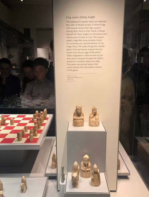 스코틀랜드의 루이스 섬에서 발견되는 체스 말입니다. 바다코끼리 아이보리로 만들어졌습니다.
