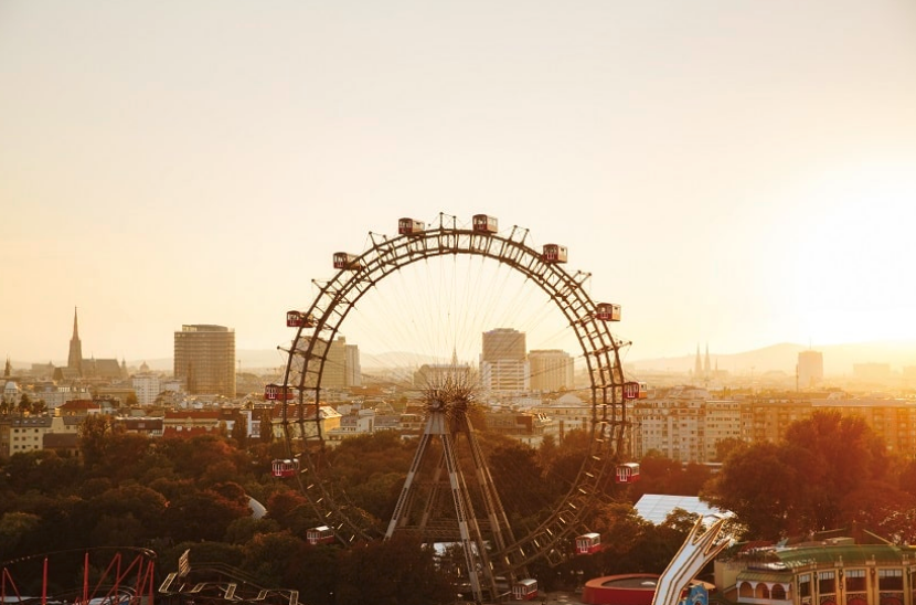 비엔나의 상징 중 하나 인 프라 터 파크 (Prater Park)의 관람차. 약 65m의 높이에서 바라보는 경치는 장관입니다. 영화 촬영에 광범위하게 사용되어 왔으며 오슨 웰즈 주연의 "The Third Man"과 "007 : Living Daylights"와 같은 고전에서 중요한 역할을했기 때문에 "유럽 영화 문화의 보물"목록에 추가되었습니다.