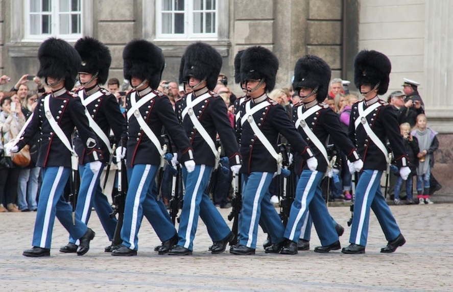 근위병 교대식도 볼거리 중 하나다. 매일 아침 로젠보르 궁전에서 아말리엔보르 궁전으로 업데이트하고 근위병 교대식을 거행합니다. 여왕이 머무는 동안 밴드의 공연을 번갈아 가며 들을 수 있습니다.