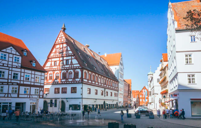약 89m 위에서 거리를 내려다볼 수 있는 다니엘 탑, 거리 중심부에 위치한 성 게오르그 교회, 붉은 주황색 지붕의 집들이 귀여운 마르크트 시장, 아폴로 우주인들도 훈련차 찾은 리스크레이터 박물관 등 작은 거리이면서도 볼거리가 많습니다!