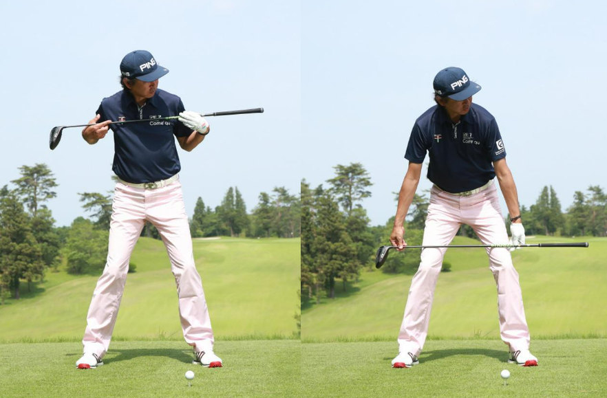 예를 들어, 오른발을 뒤로 젖힌 채 닫힌 자세를 유지하려고 하면 자세, 몸의 방향, 타깃 라인이 분리될 위험이 있습니다. 우선은 사각형으로 잡는 것으로, 이런 「치기 전에 실수」라고 하는 상황을 방지할 수 있습니다.