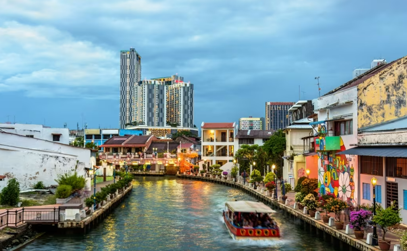 말라카 강은 말라카 시를 굽이굽이 흐릅니다. 강변 건물의 벽은 다양한 예술품으로 장식되어 있으며, 밤에는 다리와 건물의 조명으로 낮과 또 다른 분위기를 느낄 수 있습니다. 홀랜드 광장 근처에서 탑승할 수 있는 리버 크루즈에서는 말라카의 도시 풍경과 다양한 모양의 다리를 볼 수 있습니다.