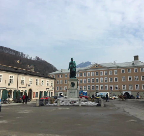 잘츠부르크에서 1756년 태어난 모차르트에게 바쳐진 광장.모차르트 사후 50년이 지났을 무렵에 세워진 모차르트 상이 있습니다.