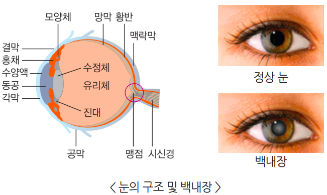 우리나라 국민의 실명 원인 1위가 바로 백내장인데요. 눈이 침침하고 사물이 뿌옇고 흐릿하고 보이며, 빛이 퍼져 보인다면 백내장을 의심해 봐야 합니다. 밝은 곳보다 어두운 곳이 잘 보이고 눈에 뭔가가 들어간 것처럼 느껴질 때도 마찬가지입니다.