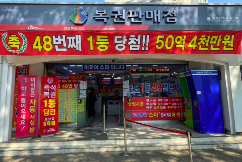 잠실역 8번출구에 자리잡고 있는 로또명당 가판점인 잠실매점 입니다.