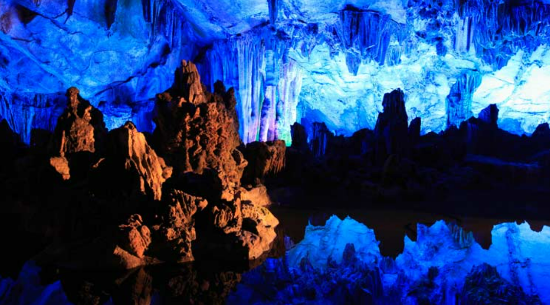 중국 구이린의 관광 명소. 자연이 낳은 독특한 세계관과 화려한 일루미네이션은 일루미네이션을 좋아하는 사람 필견! 동굴 안에는 8세기경에 쓰여졌다고 전해지는 시가 있습니다.