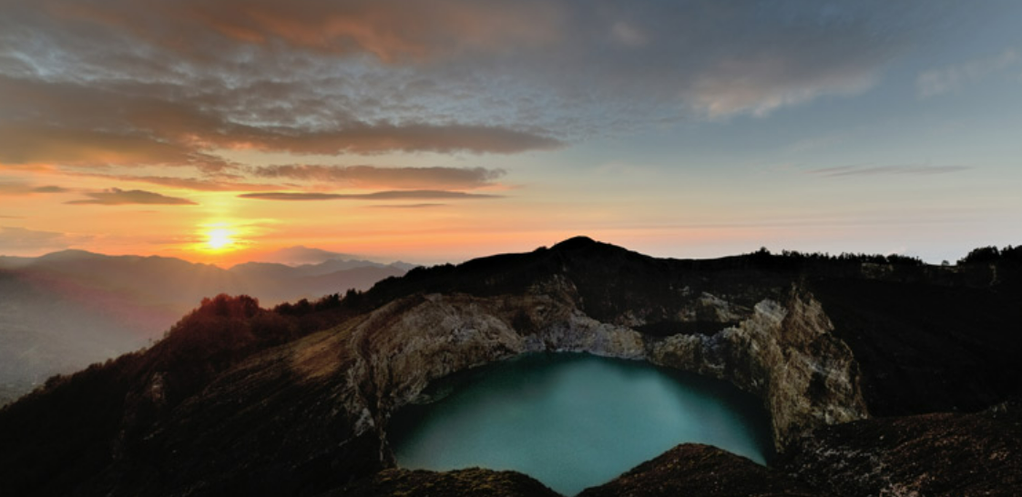 플로레스 섬의 작은 마을 모니 근처에 위치한 화산. 삼색 분화구 호수가 있는 것으로 유명합니다. 초록색은 "노인의 영혼이 가는 호수", 청록색은 "젊은 남녀의 영혼이 가는 호수", 빨간색은 "죄인의 영혼이 가는 호수"입니다. 같은 화산임에도 불구하고 세 가지 색의 호수가 있어 관광객뿐만 아니라 학자들의 관심을 끄는 곳입니다.