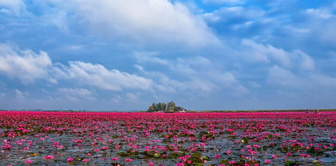태국 쿤 파와피 지구에 위치한 탈레 부아 댕은 매년 12월부터 2월 초까지 이른 아침에 호수 표면을 덮고 피어나는 분홍색 수련 때문에 "붉은 수련의 바다"로 알려져 있습니다. 극락정토의 눈부신 아름다움은 한 번쯤은 보고 싶은 것입니다. 1월~2월 상순에 만개할 때는 보트를 타고 호수 주변을 유람하면서 환상적인 경치를 즐길 수 있습니다.