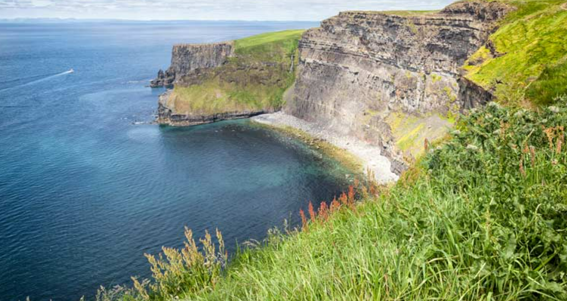 대서양이 내려다 보이는 아일랜드 서부 해안의 "모허 절벽". 가장 높은 지점은 높이가 약 200m이며 절벽의 전망은 장관입니다. 날씨가 좋으면 골웨이 베이(Galway Bay)의 아란 제도(Aran Islands)와 코네마라(Connemara) 지역을 볼 수 있습니다.