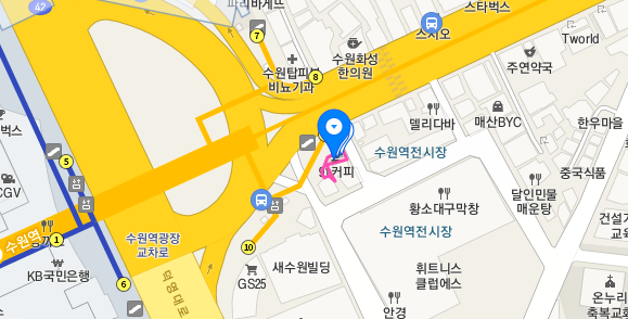주소 : 경기 수원시 팔달구 매산로 1가 58-20(수원역 9번출구 모퉁이)