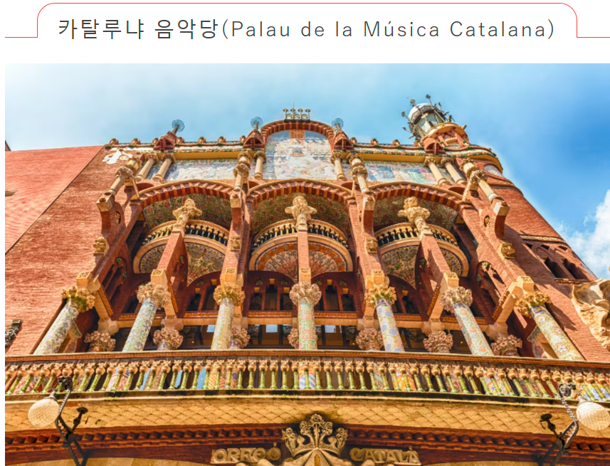 1905~1908년에 지어진 카탈루냐 음악당은 건축가 몬타네르가 가우디와 함께 설계한 콘서트홀입니다. 천장의 스테인드글라스와 우아한 장식 등 건물의 숨막히는 아름다움에 매료될 것은 틀림없습니다. 플라멩코나 오페라 등의 공연을 관람할 수 있는 투어도 있으니, 시간에 여유가 있다면 꼭 참가해 보세요.