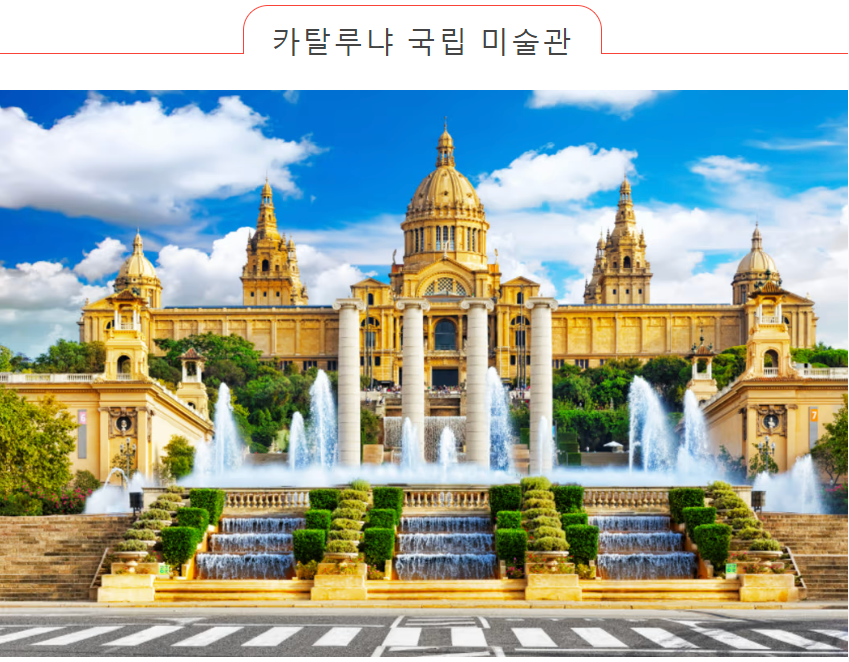 카탈루냐 국립 미술관(Museu Nacional d'Art de Catalunya)은 몬주익(Montjuïc) 언덕에 웅장하게 서 있습니다. 일부 방에서는 피레네 산맥의 산에있는 교회의 벽화가 그대로 옮겨져 재생산되었으며, Taúl이 그린 로마네스크 벽화가 박물관의 중심입니다. 또, 가우디가 디자인한 나무 의자나 피카소와 달리 등의 유명한 작품도 있으니, 2, 3시간 정도 시간을 할애해 주세요.