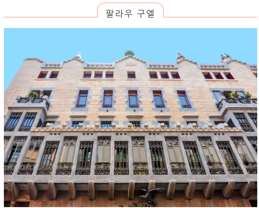 구엘 공원은 1984년 가우디의 작품 중 하나로 세계문화유산으로 지정되었습니다. 공원의 랜드마크가 된 도마뱀 오브제와 사탕 집처럼 귀여운 건물이 포토제닉합니다. 시간 지정 입장권이 필요하니 미리 구입해야 합니다.
