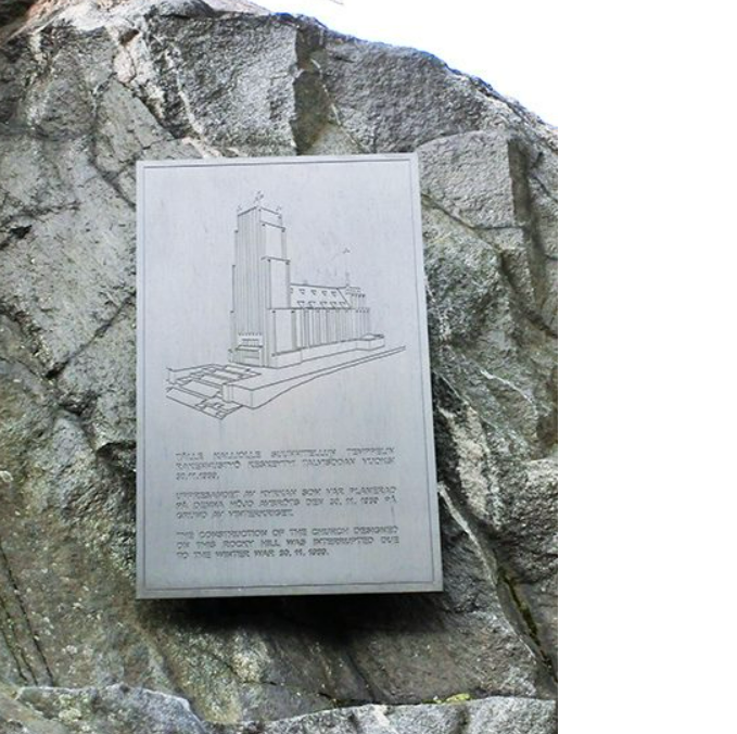 1930년에 이 바위산에 교회를 세우기로 결정했으며, 당시의 설계 도면도 표시됩니다.