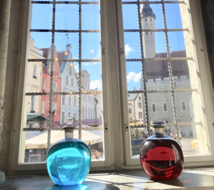 창문 너머로는 탈린의 얼굴이라고도 할 수 있는 라 에코야 광장이 보이고, 관광과 쇼핑을 모두 즐길 수 있는 장소예요. 사랑에 빠진 아픔을 치유하는 약도 판매 중!