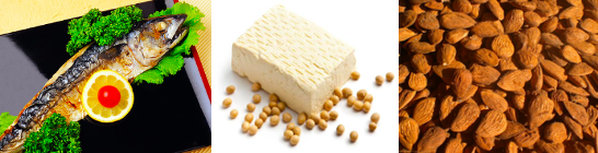 DHA · EPA가 풍부한 고등어 · 정어리 등의 어류, 비타민 E가 풍부한 콩 제품, 아몬드, 참깨 등을 의식해 섭취하는 것을 추천합니다.