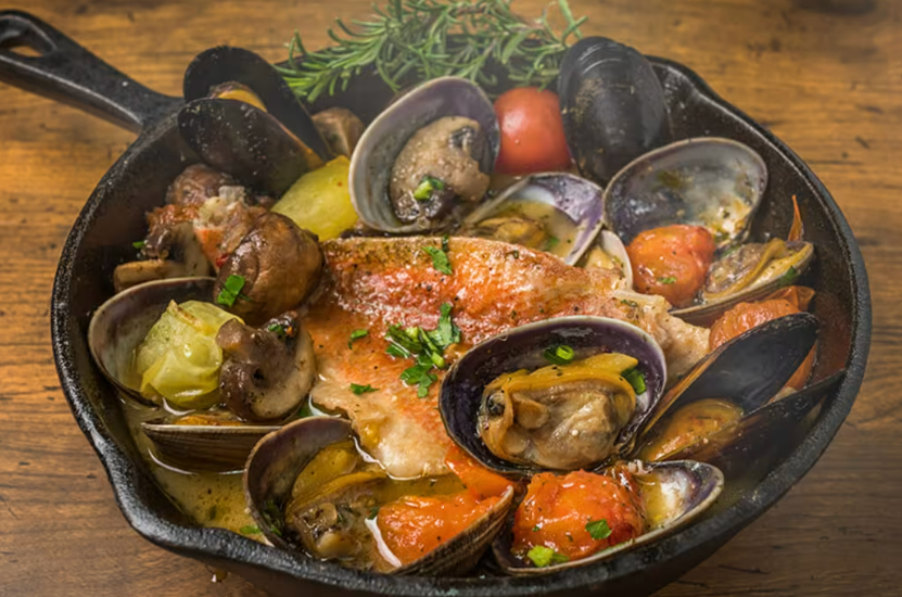 문자 그대로 번역하면 "날뛰는 물" 또는 "이상한 물"을 의미하는 캄파니아의 국가 요리입니다. 타이, 대구, 홍합 등 해산물을 올리브 오일과 마늘에 볶아 물, 토마토, 이탈리안 파슬리, 화이트 와인에 볶아 만든 간단하지만 맛있는 요리입니다. 원래는 어부들이 바닷물에 생선을 끓여 만든 요리였다고 합니다. 캄파니아의 유명한 화이트 와인과 완벽하게 어울립니다. 먹고 나면 몸도 마음도 가득 찹니다.