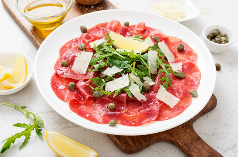 더운 여름날 등 몸을 상쾌하게 하고 싶을 때 먹고 싶은 이탈리안 전채입니다. 식물의 발상지인 이탈리아에서는 파르미지아노 레지아노(Parmigiano Reggiano)와 함께 생쇠고기를 먹은 것이 원래라는 설이 있으며, 이름의 유래는 15세기 화가 비토레 카르파쵸(Vittore Carpaccio)가 먹는 방식을 즐겼던 것에서 유래했습니다. 요즘은 이탈리아에서도 쇠고기 이외에 해산물을 사용한 카르파치오를 맛볼 수 있기 때문에, 한과의 차이를 찾아보는 것도 재미있을 것입니다.
