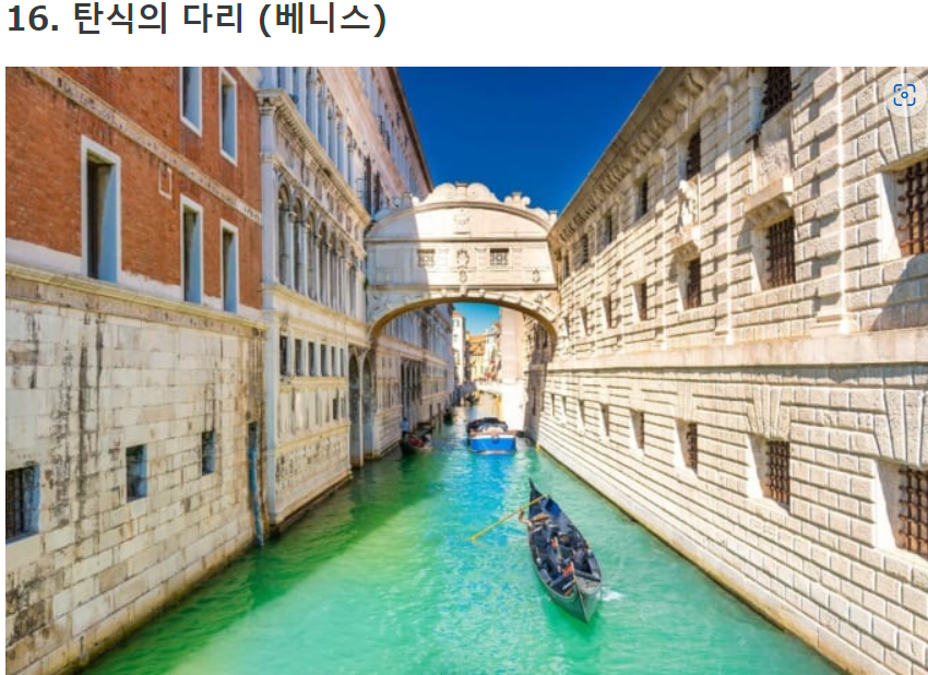 "탄식의 다리"라는 이름의 유래는 너무 아름다워서 한숨을 쉬게 만들기 때문입니다 ... 오히려 감옥에 갇힌 죄수들이 베네치아의 아름다운 풍경을 볼 수 있는 마지막 시간이기 때문에 한숨을 쉬는 것에서 따왔다고 합니다. 사랑의 파워 스폿이라는 것은 조금 의외일지도 모르겠습니다만, 이탈리아를 관광할 때 꼭 가보시길 추천 드립니다.