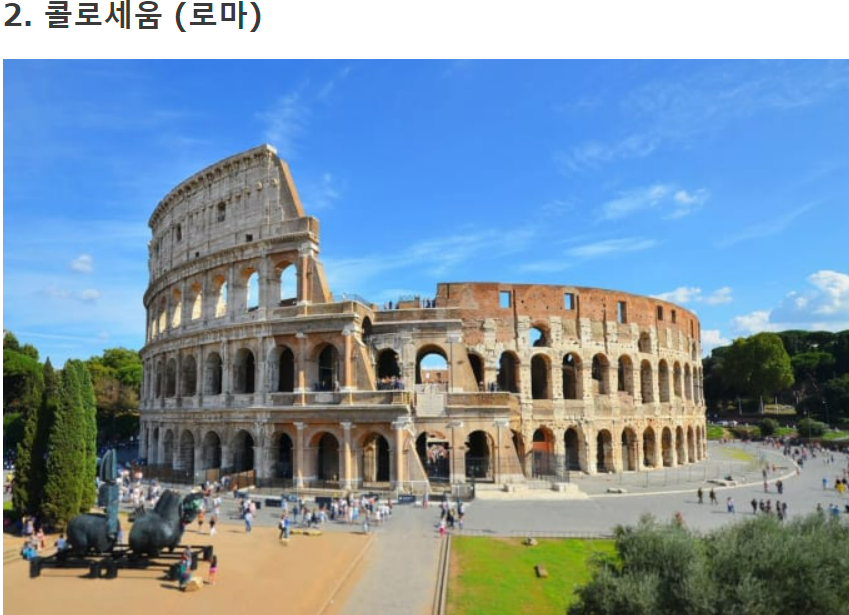 이탈리아 로마를 관광할 때 꼭 봐야 할 관광 명소 중 하나는 콜로세움입니다. 세계문화유산으로 등록된 콜로세움은 이탈리아를 방문하는 세계 각국의 관광객들로 항상 붐빕니다.