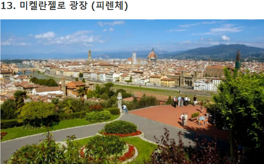 미켈란젤로 광장은 이탈리아 피렌체 시가 내려다보이는 언덕에 위치해 있습니다.