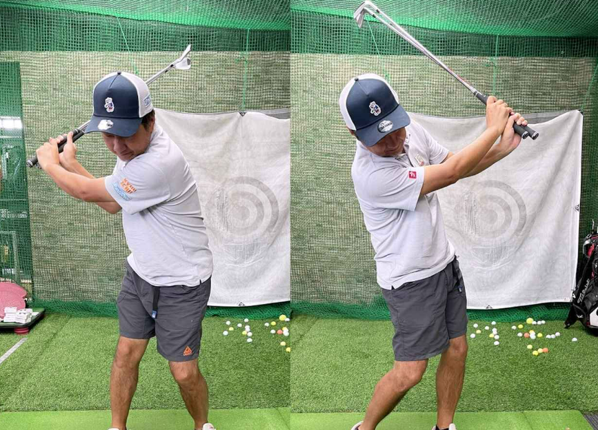 두 번째가 클럽을 두 개 들고 하는 몸짓입니다.무게에 차이는 감각이 몸에 밴다는 거죠.
