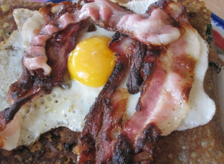 우선은 메인 코스인 가레트를 주문합니다. 버터, 치즈, 생크림 등을 햄, 베이컨, 야채, 연어, 계란 등과 함께 사용합니다.수십 가지! 갈레트의 맛을 제대로 즐기고 싶다면 심플한 베이컨과 계란을 추천합니다!