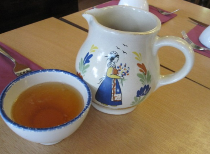 자리에 앉으면 음료를 먼저 주문하되, 크레페 가게에서는 브르타뉴 특산품인 사이다를 주문해야 합니다. Brut (매운맛)와 Doux (단맛)의 2 종류가 있습니다 만, 술을 싫어하는 사람은 단맛을 추천합니다.