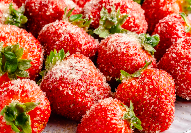 The stale strawberries don't taste good. In this case, if you sprinkle sugar on strawberries and a little liquor such as whiskey or brandy, it turns into a very new taste.