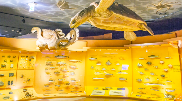 Whales are a mystery to people back then and now. The types of whales in Korea include porpoises, killer whales, ghost whales, and long-male whales, and various types of whale specimens, including minke whales, can be observed. On the first floor, the skeleton of a sperm whale stranded in Boleumdo Island, Seodo-myeon, Ganghwa-do is displayed. It is said to have reached 14.5m in length and 20 tons in weight at the time of discovery, and dozens of cone-shaped sharp teeth are attached to the long lower jawbone, suggesting the greatness of living.