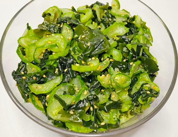 9. Put the watery seaweed and cucumber in a bowl and mix them well.