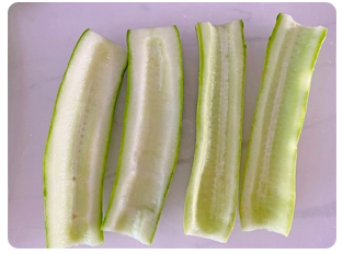 4.Then cut it in half and peel off the cucumber seeds in the middle with a teaspoon. That way, you can put it on the side dish later and it doesn't get water easily.
