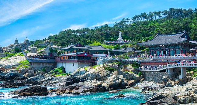 Haedong Yonggungsa Temple is one of Korea's top three Gwaneum Holy Land, located on a coastal cliff outside Busan. It is the closest temple to the beach in Korea, and you can see the solemn appearance of the Buddha statue that seems to touch the waves at any moment.