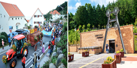 The German village was created for Korean residents in Germany after going out to West Germany to earn money as miners and nurses to earn foreign currency when Korea was in financial difficulties. The German village is lined with beautiful buildings with white exterior and orange roofing.