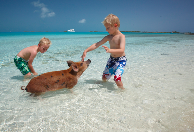 In fact, it is an island where wild pigs live, but it is not dangerous, and it is a travel destination loved by many tourists because it can swim with pigs in clear water.