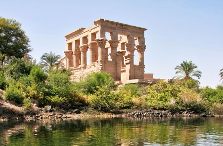 a temple remaining on the island of Agilkia near Aswan In fact, the site was moved from Pilae Island to Agilkia Island by the construction of the Aswan High Dam in 1980.The temple is a boat ride across the river, so unlike other ruins, you can enjoy the feeling of adventure.